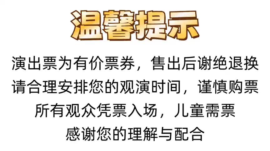 *请观众提前半小时入场,每人一券,所有观众凭票入场。对号入座,严禁跨层。
